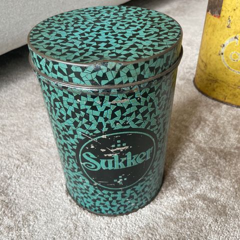 Emalje, Opbevaring til sukker, H : 14 cm Med låg Ø : 5 cm