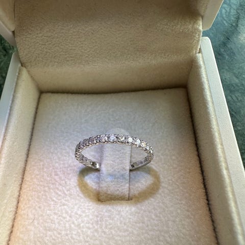 All round hvidguld ring i 14 karat med naturlige diamanter hele vejen rundt. IDL certifikat følger med. Ubrugt stand leveres i fin gaveæske med indbygget lys, perfekt som gave eller til at forkæle sig selv.