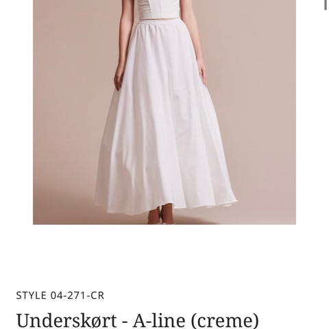 Jeg sælger denne underskirt fra LILLY (‘Flare’-model). Den er aldrig blevet brugt, og sælger den da jeg har købt en anden underskørt som passer bedre til min brudekjole - prismærket er stadigvæk på underskørtet.