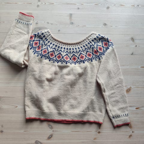 Lyseblå tyk strik sweater med mønster M