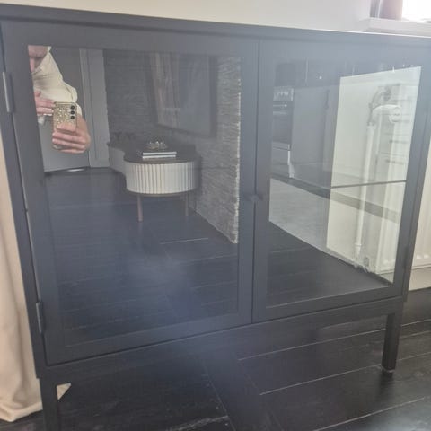 Et smukt vetrineskab i rigtig god stand stortset uden brugsspor sælges. Sælges udelukkende pga flytning, hvor vi ikke længere har plads til skabet.