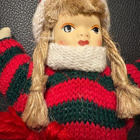 Antik jule pige, Meget gammel antik porcelæns nissepige / julepige vinterpige 100kr