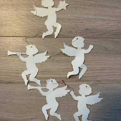 2 fantastiske skønne juleengle fra 70’erne med instrumenter. Blå og grøn juleengel engle med guldvinger ca 8 cm juleengel engel