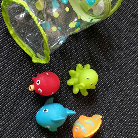 Badelegetøj børnelegetøj bestående af farverige tælleklodser med tal fra 1 til 9. Klodserne er designet til at hjælpe børn med at lære tal og tælle. Farverne varierer mellem rød, gul, blå, pink og grøn. Materialet er plast.