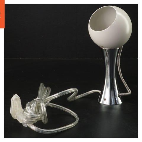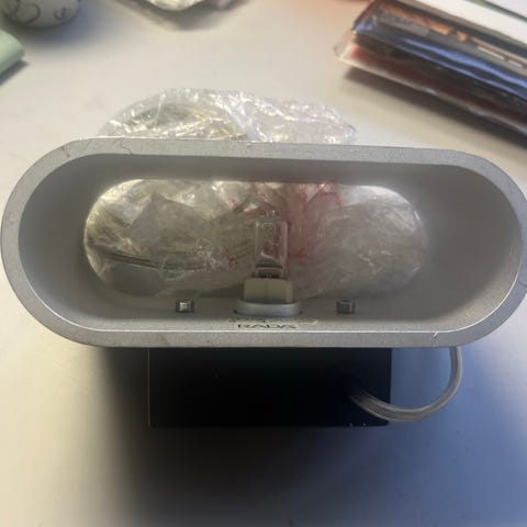Lampen har en moderne, skulpturel form med en metaloverflade og en inderside i hvid.,Afhentes i:,Røde Kors Holstebro (661),Bemærk at mail, chat og beskeder ikke besvares, og varen skal købes på knappen "Gå til varen"