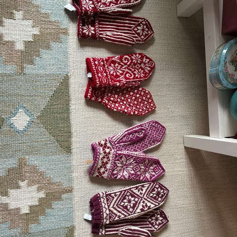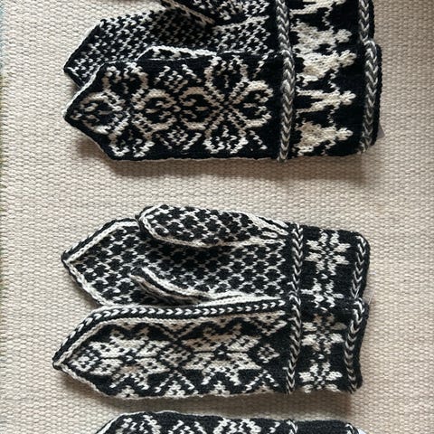Bløde alpaca-vanter. Vanterne er strikket på meget tynde pinde, hvilket muliggør de meget detaljerede flotte mønstre.
