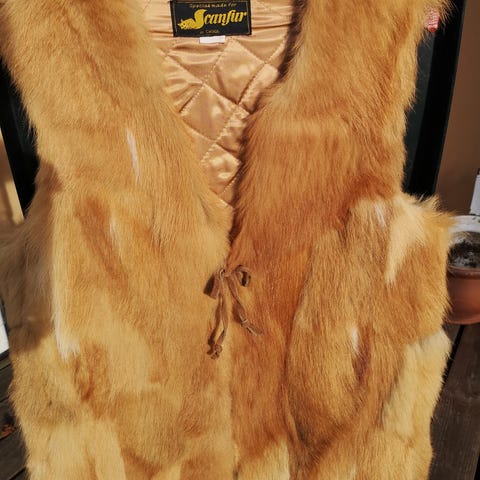 Blød og let vævet kaninvest fra Levinsky's Black Buddha serie. Farven er rustrød / terrakotta. Størrelse er s/m svarende til alm. 34, 36, 38. Aldrig brugt.