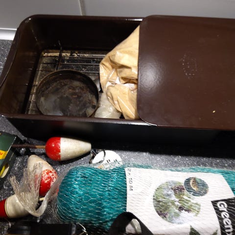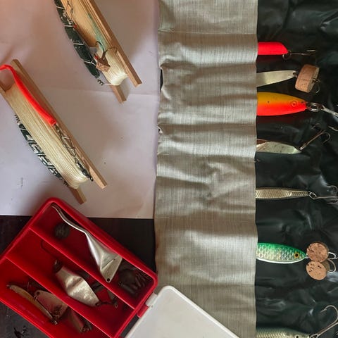 Fiskegrejssæt, skal ikke bruge dette grej mere, hjul af ældre dato.