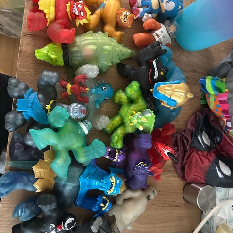 Sæt bestående af forskellige actionfigurer med tilhørende tilbehør som våben og udstyr. Figurenes farver og designs varierer, og de er lavet i plastikmateriale. Velegnet til samling eller leg.