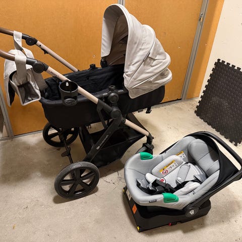 Kinderkraft barnevogn og autostol sæt sort
