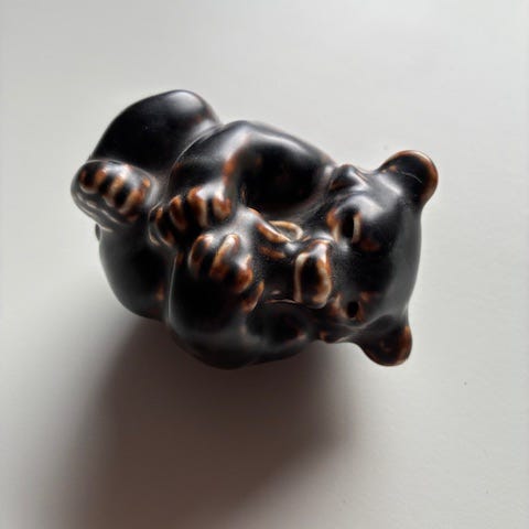 Keramik brun bjørn figur med glaseret overflade. Velegnet som dekorationsobjekt i hjemmet.