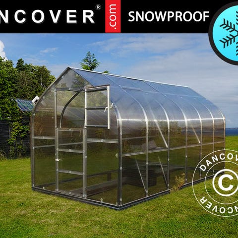 Ekstra stærkt og holdbart drivhus med 4 mm polycarbonatpaneler for ekstra styrke. Med dette elegante og vedligeholdelsesfrie drivhus kan du forlænge havesæsonen og nyde hjemmedyrkede frugter, grøntsager og blomster. Bemærk venligst den høje snelast på 240 kg/m², som gør dette drivhus velegnet til områder med meget sne. Stalddøren kan hjælpe dig med at lufte ud i drivhuset og skabe de optimale vækstbetingelser. Du kan bestille en eller flere forlængelser til dette drivhus.