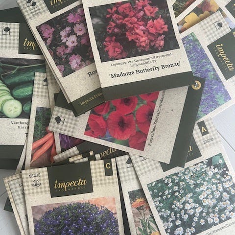 Nye uåbnede poser fra Premium Seeds med frø fra tallerkensmækker. Der er 5 g. Frø i posen.