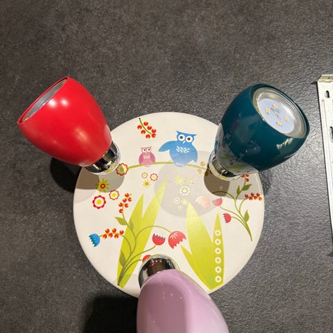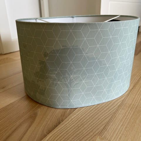 Lampeskærm til børneværelset. Cremefarvet med fine gule jordbær-motiver. Jeg kan desværre ikke huske mærket, men jeg købte det til mit barns værelse og har aldrig fået den brugt.