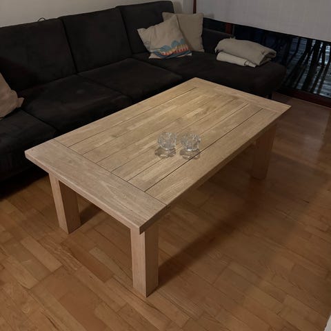 Sofabord 70 x 70 cm. i lyst træ med flotte udskæringer på ben