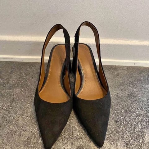 Zara højhælet sko i størrelse 36 med sort farve. Skoene har en spids form og en høj hæl, lavet i materiale med krokodillemønster. Designet til kvinder.