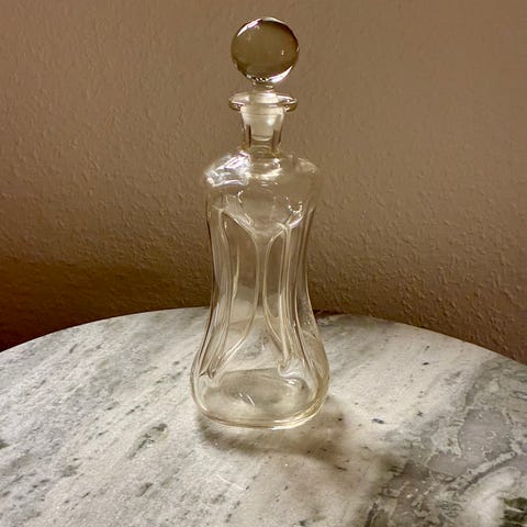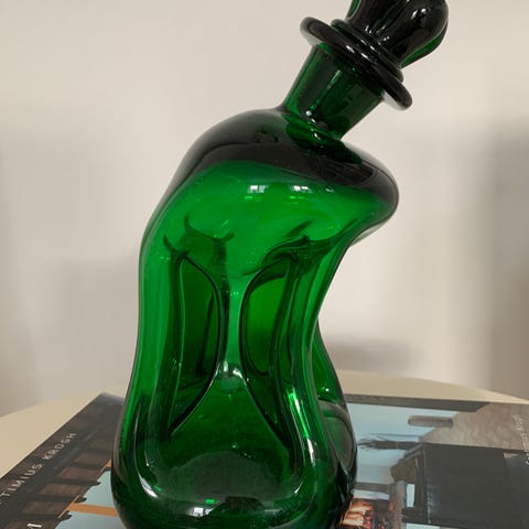 Holmegaards Klukflaske er designet af den danske arkitekt og designer Ole Winther og er mere sjælden i den grå / smoke farven som denne