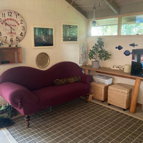 Antik smuk sofa i mahogni træ med blomstret stof fra Sanderson