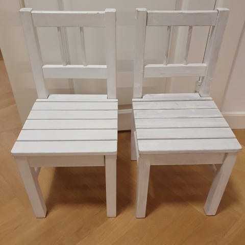 Børnestol hvidmalet i meget fin stand næsten som ny står meget stabilt