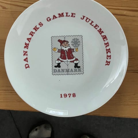 Ældre juleplatte med julemand fra Hjemmet.