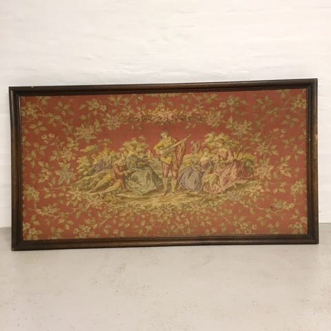 Antik fransk skærmvæg med broderet gobelin tekstil