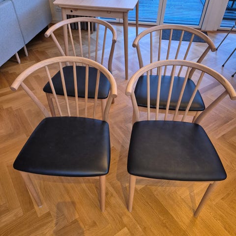 Tidsløs og stilren spisestol fra Top-Line. Stolene er i massiv naturolieret egetræ og med sæde i en behagelig og slidstærk okselæder.
