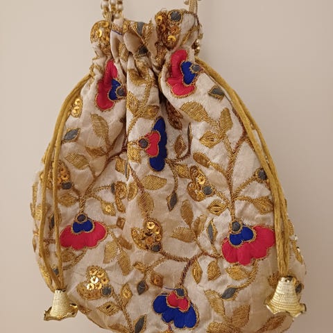 Taske med broderi af fugle på taske