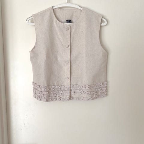 Ubrugt bluse i beige og perler på ærmerne