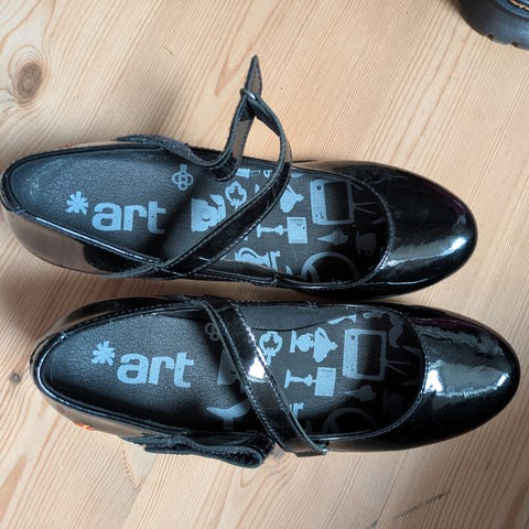 Indvendigt er den foret med glat skind, og har en blød og behagelig dæksål. Hælen måler 6 cm.