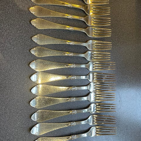 6 middagsgafler (19,5 cm lange) á 25 kr. pr. stk.