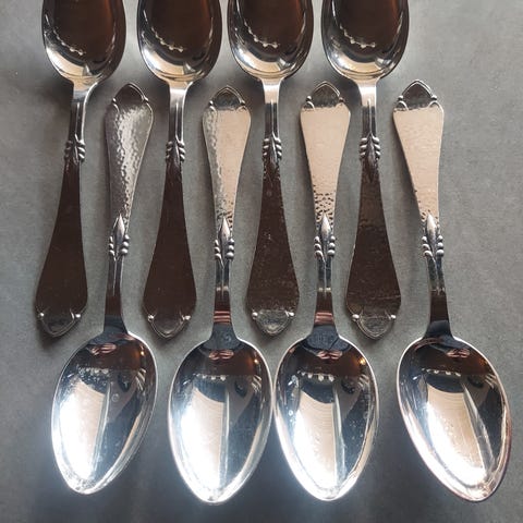 5 kaffeskeer (12,1 cm lange) á 20 kr. pr. stk.