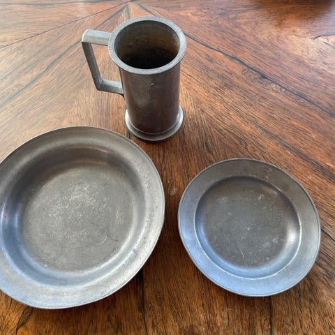 4 antikke tin tallerkener. Townsend & compton. Made in London.