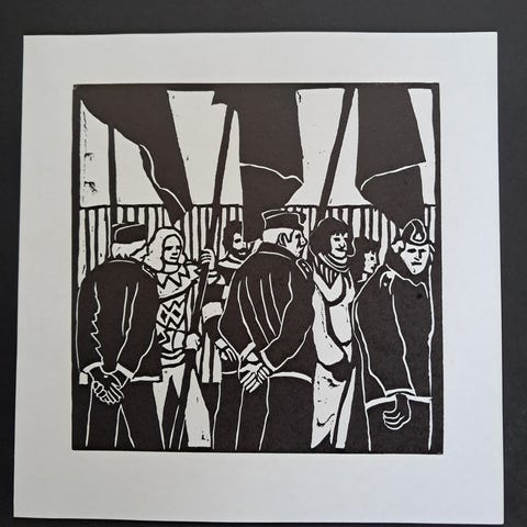 Originalt linoleumstryk trykt direkte fra linoleumspladen