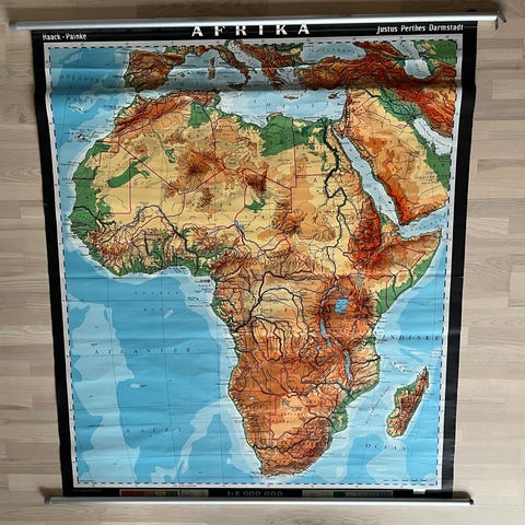 DAGENS SKARPE TILBUD 🤩💪🏻 .. Et stort flot gammelt skolekort over Afrika . Måler 172•180 med træholderne i top og bund. Kan blive dit for KUN 895kr i dag !