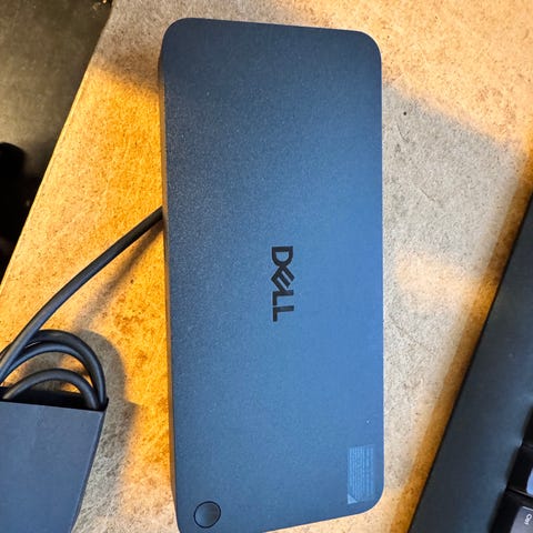 Dell WD15 Dockingstation med flere porte inklusive USB, VGA, Ethernet og lydudgang. Designet til at udvide tilslutningsmulighederne for bærbare computere.