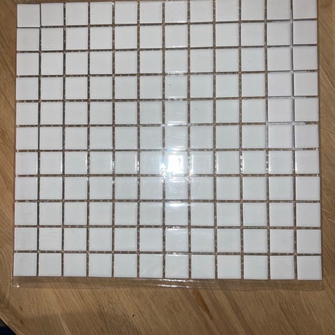 MOSAIK flise med målene 30x30 cm i hvid farve. Flisen er lavet af keramisk materiale og er egnet til væg- og gulvbeklædning i forskellige rum.