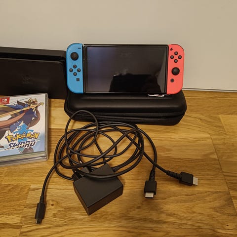 Der medfølger alt; Switch, Joycons, controller grip, joycon-straps, HDMI-kabel, oplader og selvfølgelig den ikoniske Pokemon dock. Alt er originalt.