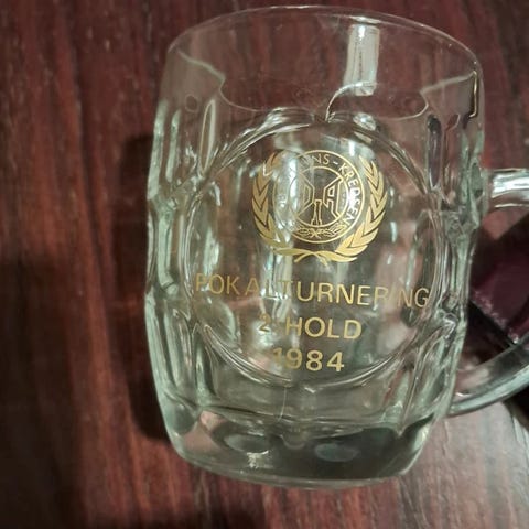 Sæt med to blå pokalvaser med “DAI Dommer – 250 kampe” tryk. Vaserne er ca. 21 cm høje og har en tung og solid kvalitet, som giver dem et stabilt udtryk. De fremstår i pæn stand med lette brugsspor.