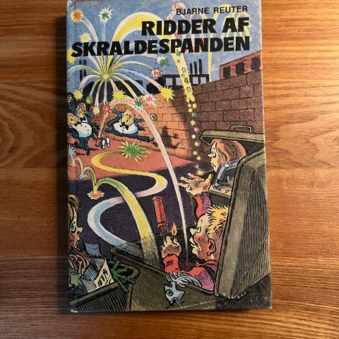 Bjarne Reuter Ridder af Skraldespanden bog med hardcover. Bogen er på dansk og indeholder historien Ridder af Skraldespanden.