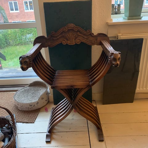 Antik Træstol med Udsmykket Ryglæn