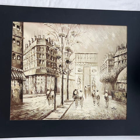 Maleri med motiv af cyklister i bevægelse. Farvetemaet er primært orange, sort og guld. Maleriet har et moderne og abstrakt udtryk med fokus på bevægelse og rytme.