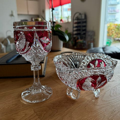 Krystal med slibninger, se fotos. Klar glas. Flot og uden fejl.