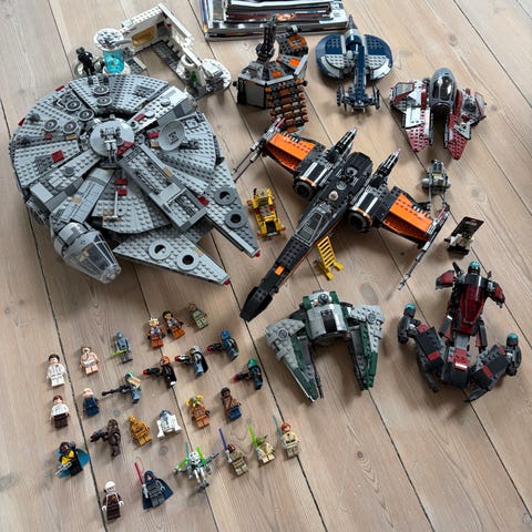 LEGO Star Wars Mini Building Set med forskellige modeller, herunder Anakin's Podracer, Jedi Starfighter, Imperial Shuttle og AT-AT.