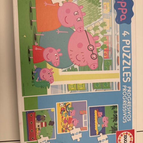 Peppa Pig puslespil med 48 brikker, der viser forskellige scener fra Peppa Pig universet. Puslespillet er lavet af pap og egner sig til børn.