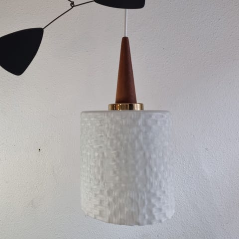 Lille opal glas pendel med messing top.