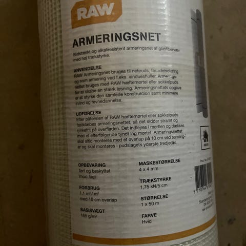 Armeringsnet fra Skaltherm. Kun brugt ca 6m2, så der er ca 44 m2.