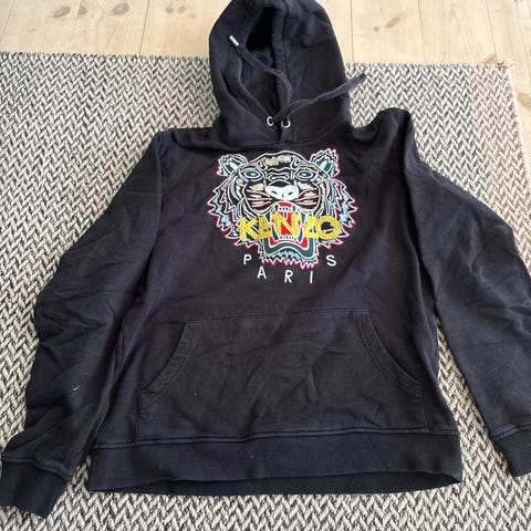Kenzo Sort Bomuld Herre Trøje i størrelse M. Trøjen har et broderet tigermotiv på forsiden og er lavet af bomuldsmateriale.