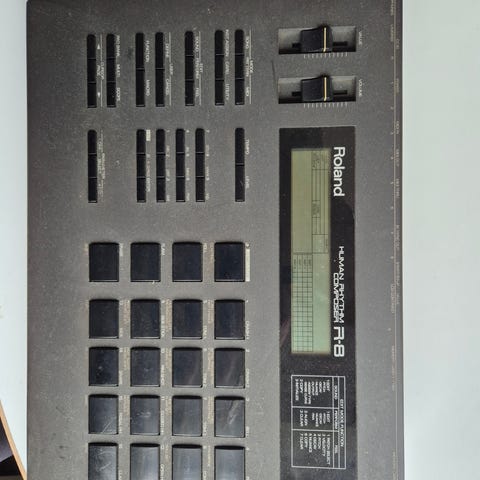 Fed rhythm composer fra japanske Rolan fra 1990'erne inkl original strømforsyning og virker som den skal, blev serviceseret her i starten af året, så den skulle også virke upåklageligt mekanisk og statisk