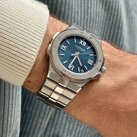 Uret er drevet af en COSC-certificeret automatisk mekanisme med en gangreserve på 54 timer. Den blå alligatorlæderrem skaber en flot kontrast til guldet, og kronograffunktionerne dækker 60-sekunders, 12-timers og 30-minutters subdials. Et sandt mesterværk fra Chopard, dette ur forener elegance og funktionalitet på en unik måde og vil være en værdsat del af enhver samling.