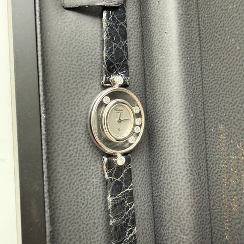Vi præsenterer Chopard Happy Sport Chronograph i roseguld. Denne model fra den klassiske Happy Sport-serie har en moderne dimension med sin 42 mm kasse i poleret, etisk 18-karat roseguld. Urskiven har et solstrålemønster og prydes af syv svævende diamanter, hvilket giver et luksuriøst udtryk. Varenummer 288515-9004 har en kronograf-komplikation, der giver et sporty touch og gør det passende til både hverdag og fest.